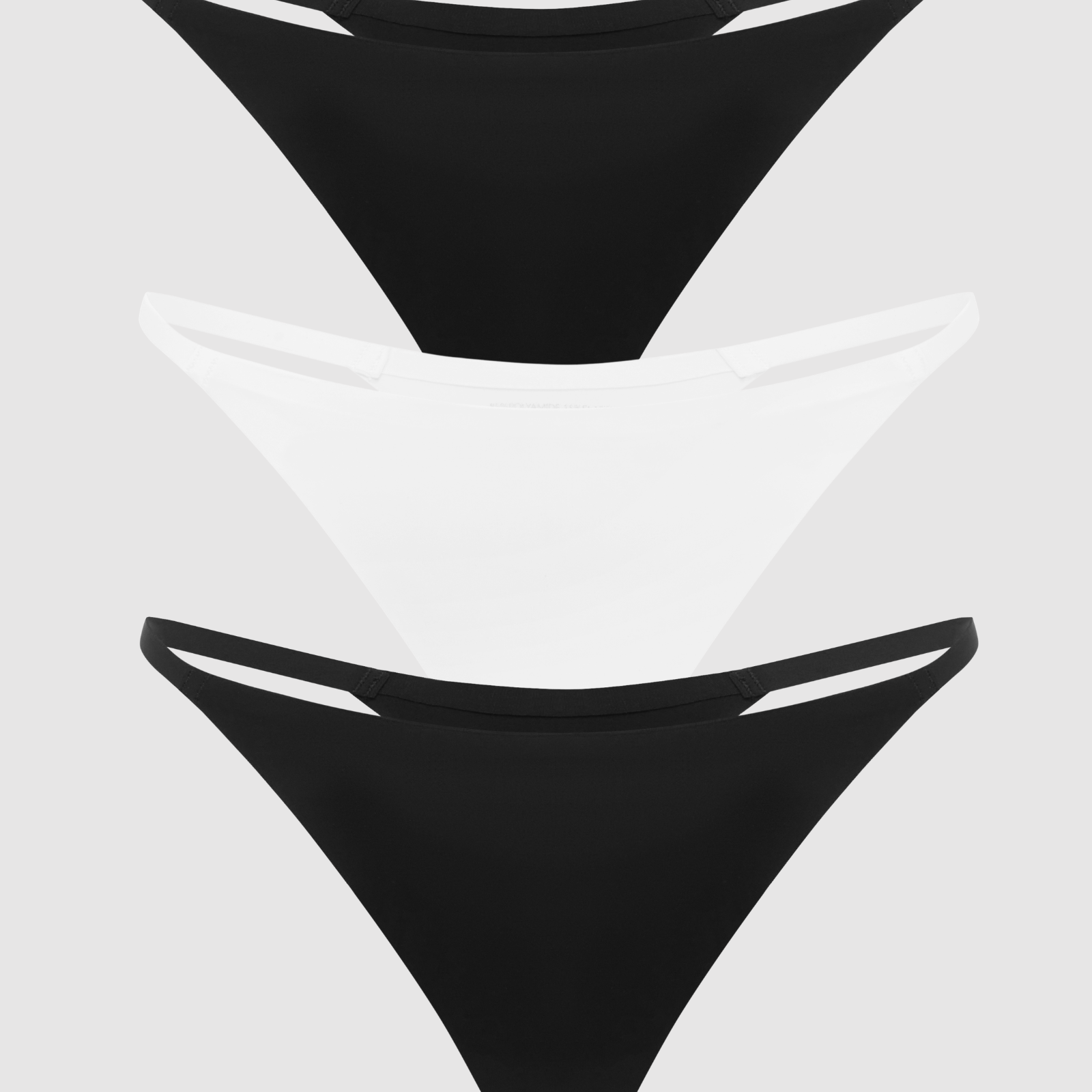 Set of three (3) Seamless G-Strings in 2x Black and 1x White.