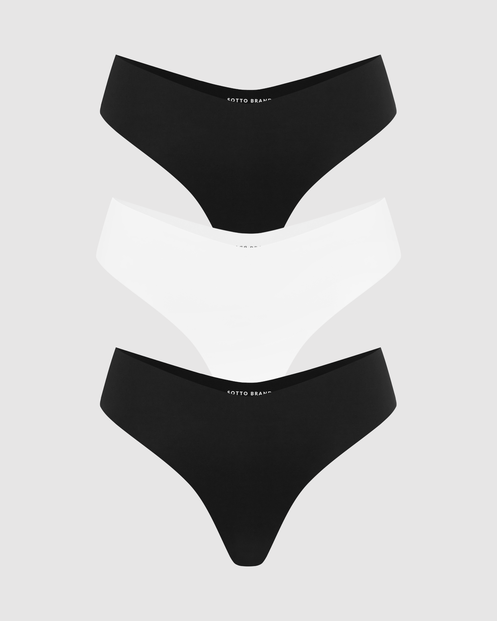 Set of three (3) Seamless Panties in 2x Black and 1x White.